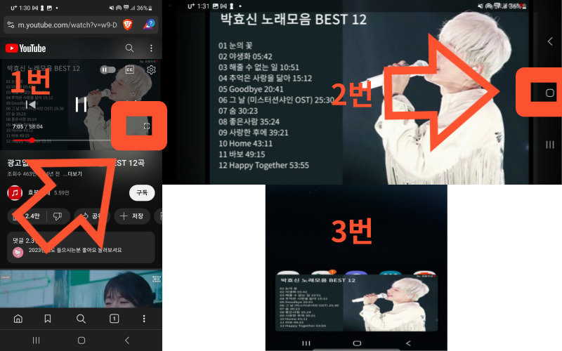 해당 방법은 PIP 설정 방법입니다. 위의 방법을 순서대로 적용하시면 유튜브 프리미엄처럼 사용이 가능하게 됩니다. 위의 3번은 손가락으로 창크기도 조절해 사용이 가능합니다.